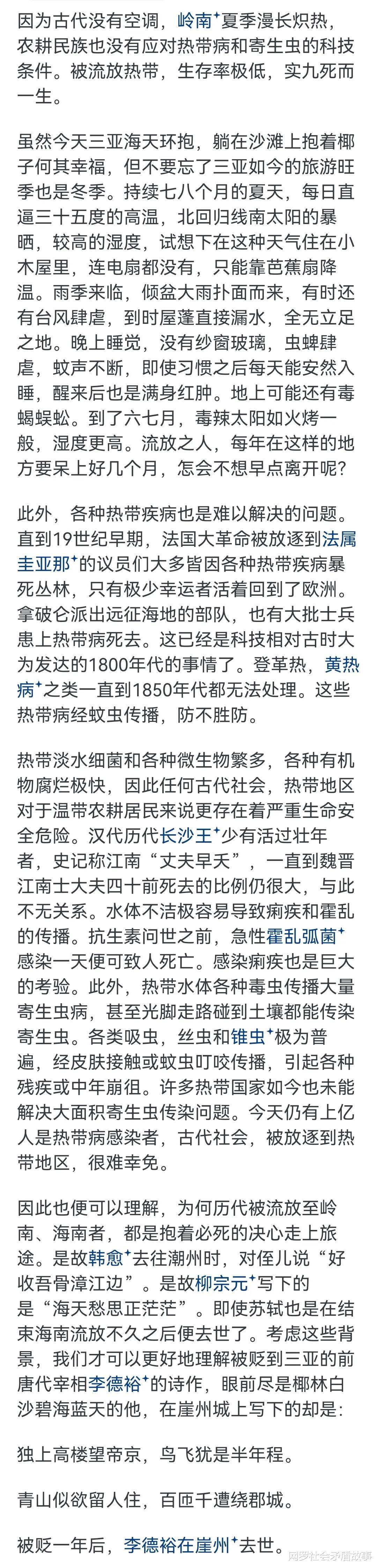 说句不好听的,别说流放海南。古时候流放途中捱到海南的都没几个,走到广东岭南一带那些蚊子都会让他痛不欲生。数量多,品种全,疟疾,登革热给来上那么一遍,不死都得脱层皮。关键是海南还更加恐怖,一年四季都有。
