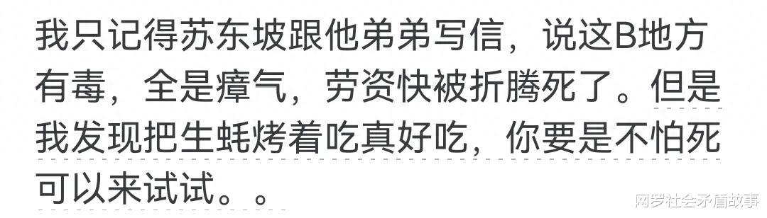 苏轼写了一篇“白头萧楼散满霜风,小阁藤床寄病容。报道先生春睡美,道人轻打五更钟”上头一看,好家伙贬你去惠州是让你去度假的嘛?于是流放去了儋州。到海南之后,苏轼给弟弟苏辙写信,觉得自己此生无望,要留在海南了。但不得不说,苏轼确实是个神人,流放出了经验,爱吃才会赢一点也没错。
