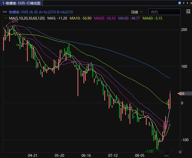 图:10月合约卷螺差走势