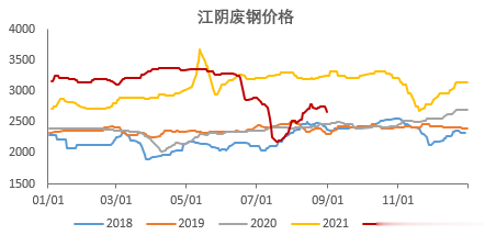 截至上周,螺纹钢产量265.18万吨/日,较7月底的230万吨的日均产量回升明显,而且,不仅是高炉产量增加明显,电炉产量也同样明显企稳回升。虽然近期的废钢价格再度明显上涨,导致电炉钢成本大增,但近日废钢价格再度有走弱迹象。尽管市场普遍认为今年的废钢供给量受到很大的限制,但从8月份以来的电炉产量回升情况来看,只要有利润,产量还是能起得来的。