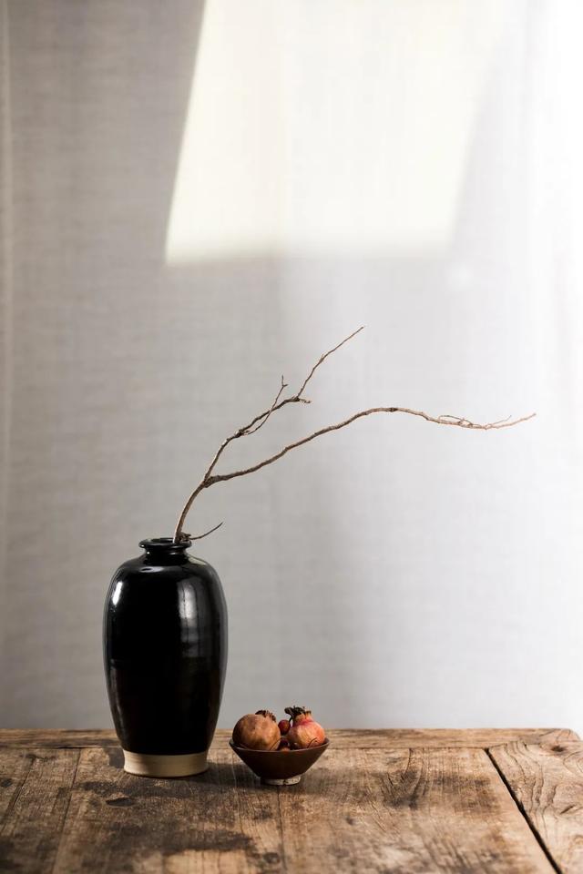 黑釉器物承载了民俗文化色彩的魅力,古人爱极了那抹深邃的纯粹,纯粹中的点点玄妙,就像磁州窑的黑釉梅瓶,一袭乌亮发色,静置一处,不夺目却绝不会让人将它忽略,兀自芬芳一隅,淡然雅致。“黑着须当黑似漆,仔细看来无别色。”