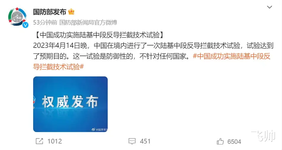 综上所述,如果4月14日的中段反导是用“神龙”空天飞机模拟X37B,以此评估陆基中段反导系统对轨道轰炸武器的拦截效果,将表明我国中段反导系统已经非常超前了,有望成为新的“杀手锏”。最后,有消息称,“神龙”空天飞机将于4月底或5月初返回地面,结束8个月的太空之旅,届时,谜底或可揭晓,大家拭目以待吧。