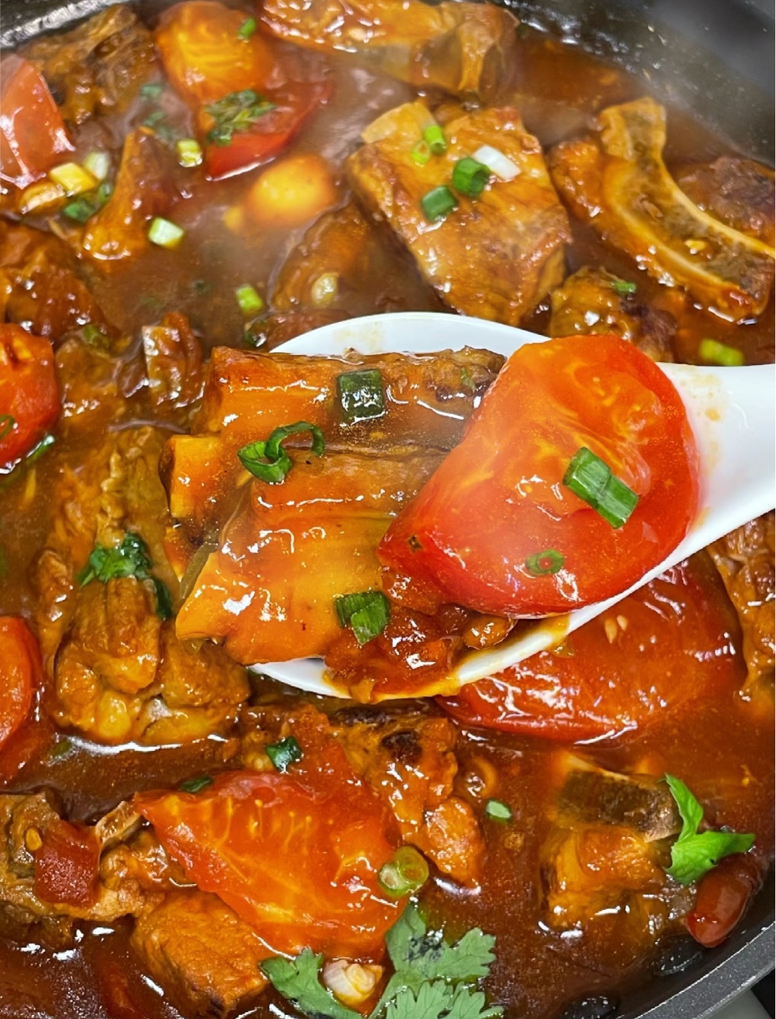 这道番茄烧排骨,集酸甜咸香于一体,肉质酥软,汤汁浓郁,是家常餐桌上的美味佳肴,适合搭配米饭食用,一口下去满嘴留香,回味无穷。