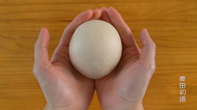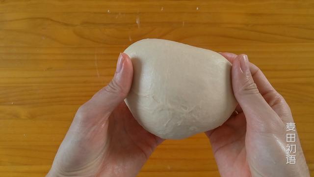 重复摔打面团的动作,直到面团表面变得更加光滑,面筋绷得更紧。先静置半分钟后再拉膜,否则面团不容易抻开。
