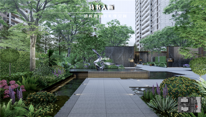 水景和错落有致的植被叠加,与建筑相辅相成,汇聚成具有东方古韵仪式特点的“归家之仪”,让业主每次步入家门时,都能感受浓浓的中式古韵、书香氛围。