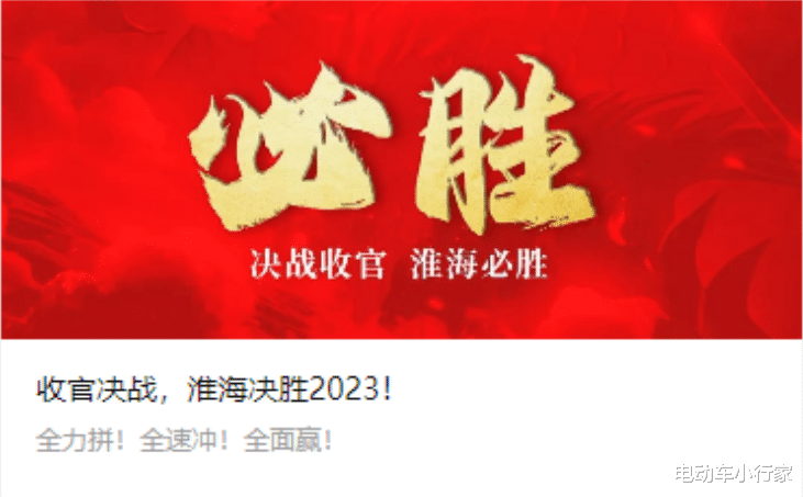 作为以三轮车为核心主营业务之一的淮海,在2022年就出能为电动三轮车年产量超过十万辆的企业有10家之一,在12月淮海已经对经销商发布通知,收官决战,全力拼!全速冲!