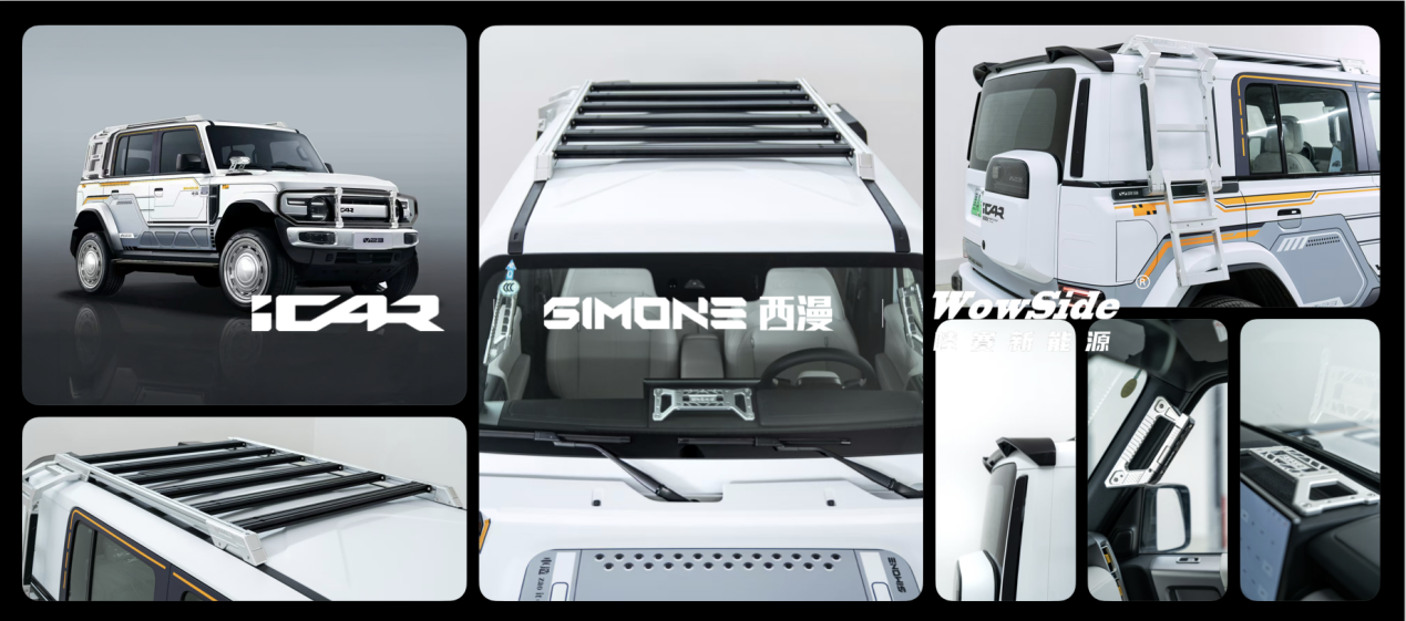此外,iCAR还积极构建完全开放的商业模式,热忱的欢迎第三方伙伴加入V23的改装生态大家庭,为进步一迎合颜值党和深度改装爱好者的需求。目前已与车造-西漫(SIMONE)和哇塞新能源(WowSide)达成深度合作,共同打造优质产品并通过官方商城进行销售。例如符合人体工学的A/B柱上车把手、可快拆模块化侧背包支持快拆扩容、全铝轻量化侧面爬梯,以及兼具实用性与硬派越野风格的牛栏杠、车顶行李架、射灯等,通过多元创意碰撞催生差异化生态布局。同时,iCAR官方精品平台还为第三方合作伙伴提供从产品设计、测试验证到营销推广的全链路支持。针对重点单品配置专属推广资源,精准触达越野爱好者社群,持续激发生态活力。