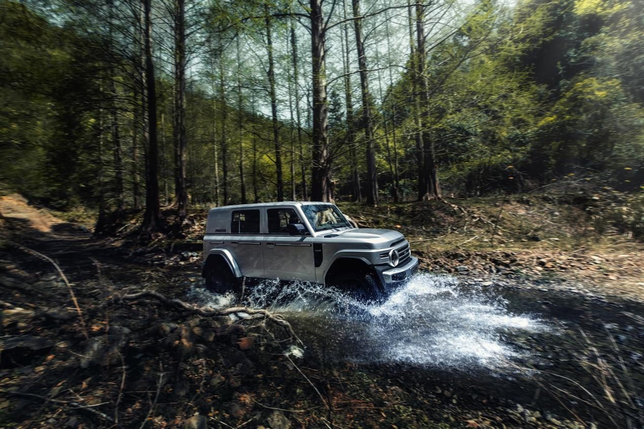 V23方正硬朗的车身轮廓搭配哑光绿车衣,奠定了硬派的基调;‌复古前格栅在复刻经典造型的同时优化进气设计,提升电机散热效率;‌机盖射灯‌严格遵循前大灯规格开发,通过防雾防眩光灯罩强化恶劣天气下的穿透性照明,为越野场景提供可靠保障;‌车身防擦条‌选用高韧性材质打造外扩式立体造型,以熏黑工艺提升视觉张力,有效抵御碎石剐蹭与植被摩擦;‌19吋AT全地形轮胎‌则通过全宽胎面减震层与强化胎体结构,兼顾复杂路况的抓地力与日常驾驶的舒适性,展现硬核性能与细节美学的平衡。每一项配置都经过严苛的工业验证,确保了改装套件在品质与审美上的双重卓越。