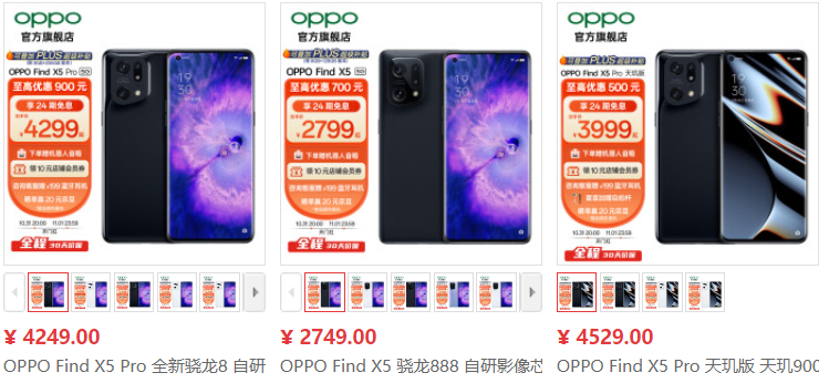 在双十一期间,OPPO Find X5系列也迎来了至高900元的全年最大优惠,并可享受24期免息、10元店铺会员券和礼品赠送。OPPO Find X5实际到手2749元起,OPPO Find X5 Pro实际到手4249元起,OPPO Find X5天玑版是3949元起,是十分值得入手的旗舰机型。