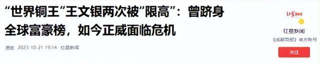 红星新闻:《“世界铜王”王文银两次被“限高”:曾跻身全球富豪榜,如今正威面临危机》【2023-10-21】