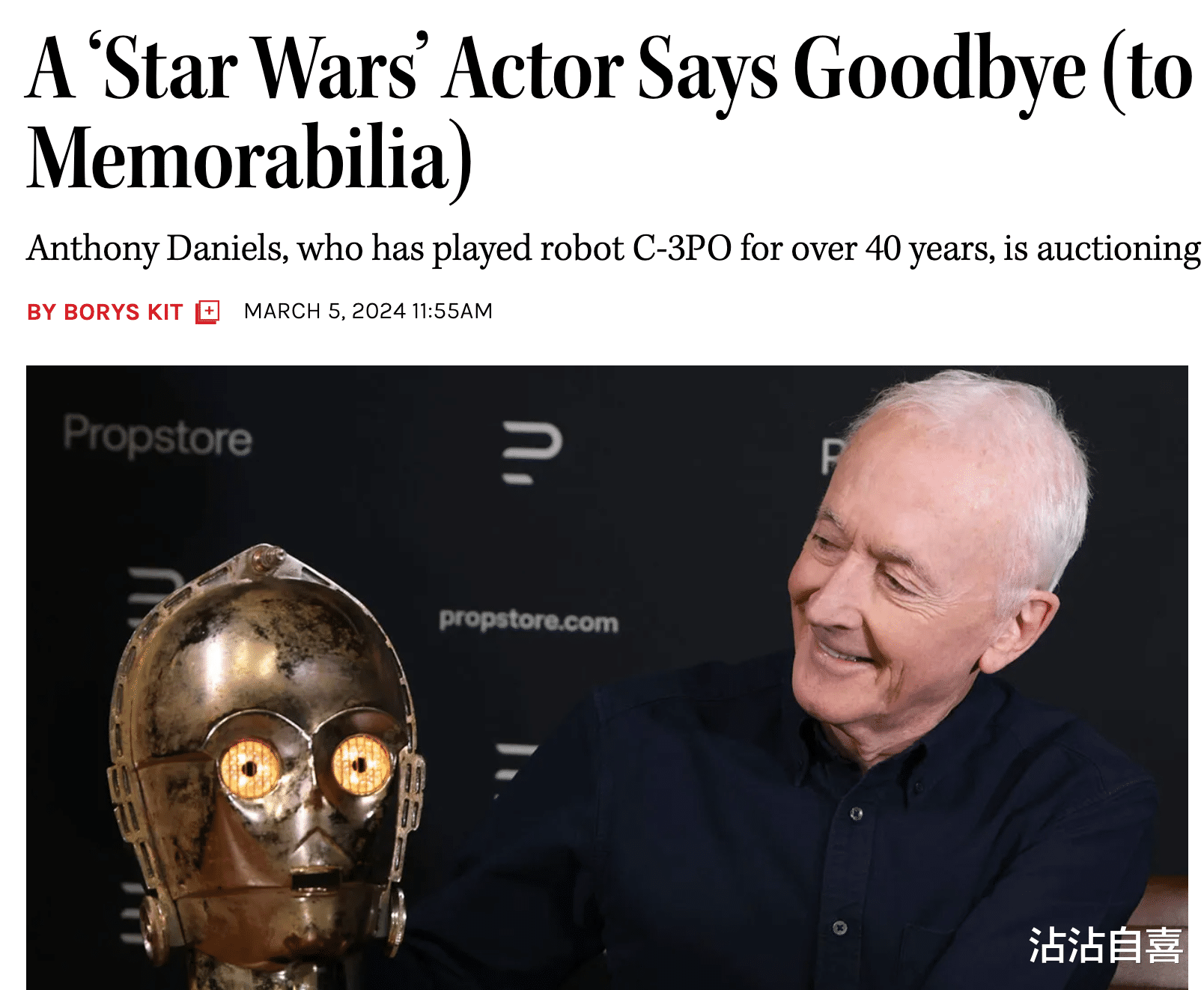 安东尼·丹尼尔斯准备拍卖《星球大战》的收藏品,他在《星战》当中扮演机器人C-3PO。有些人猜测丹尼尔斯陷入了经济窘迫当中,他被迫出售自己在演艺生涯的珍贵物品。还有一部分影迷们认为,丹尼尔斯以另外一种方式做慈善,因为国际影坛的慈善家少了很多,丹尼尔斯希望通过这种方式,让特殊群体得到帮助。《THR》的影评人波伊斯透露,丹尼尔斯还有片约在身,他还参演了《欧比旺》。狗仔队侦查到丹尼尔斯名下还有不动产,所以这位老牌演员没有遇到经济问题。博伊斯觉得“边缘角色”需要存在感,因为机器人是《星球大战》的边缘角色。在《幽灵的威胁》以及《克隆人的进攻》当中,金黄色机器人C-3PO也算是受人喜爱的边缘角色。