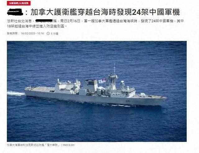 这次“渥太华”号护卫舰过航台湾海峡时表现非常“听话”还有一个原因,那就是当时“渥太华”号护卫舰的头顶上有二十多架解放军战机!根据台湾省防务部门发布的消息显示,2月16日有大量解放军战机在台湾海峡上空战备巡航,台湾岛周边也有多艘解放军舰艇在巡航。而法新社援引台媒的报道称,2月16日加拿大海军“渥太华”号护卫舰过航台湾海峡时,有24架解放军战机在台湾海峡内战备巡航,其中有18架战机越过了所谓的“海峡中线”,进入了台湾海峡东侧靠近台湾东的空域巡航。