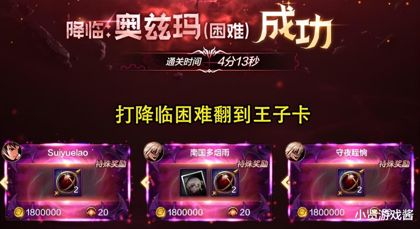 在每个版本上线后,都有欧皇出现,当然在16号版本也不例外,有玩家通过攒的封印之锁,开出2个粉卡卡包。更是有玩家在打降临奥兹玛的时候,翻到了王子卡,运气非常爆炸。