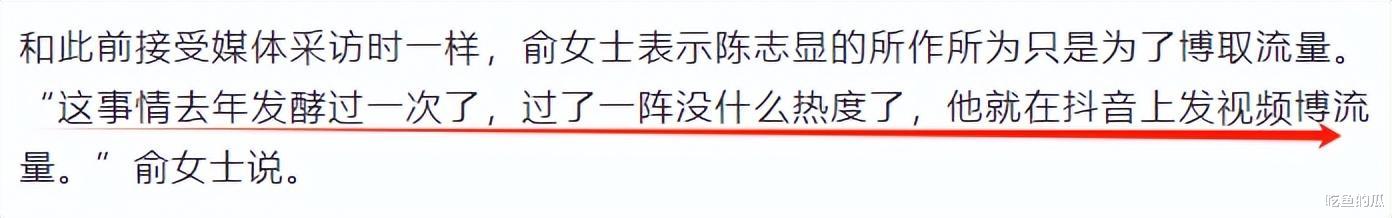俞某还说,陈志显之所以这么做就是为了博取流量,博取关注。