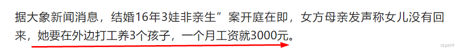 俞某母亲还说,女儿就根本没回老家,现在在外地打工养3个孩子,一个月的工资只有3000元。