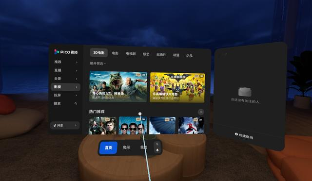 之前我主要使用AR眼镜看视频,当发现VR一体机也具有视频功能,AR眼镜就开始吃灰了。PICO的视频资源也非常丰富,其视频应用中就有160多部3D影视作品。在这里,不止有IMAS影院级别的好莱坞等3D大片,还能刷抖音、刷B站、看直播。