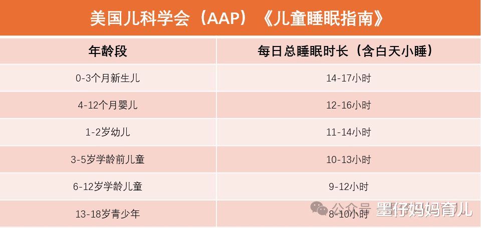 关于各个年龄段孩子的睡眠时长标准,不同权威机构给出的数据有些许差异,不过大范围是差不多的,大家可以作为参考。