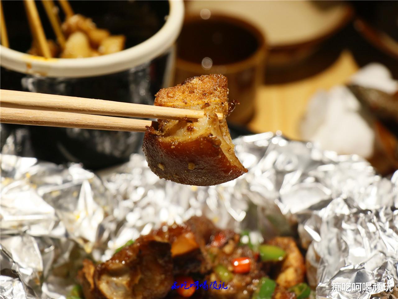 特别有意思的是烤凤尾,哈哈,原来是烤鸡屁股,不像鸡肉的紧实,鸡屁股松酥糯香,入口饱满,咀嚼后有些融化,缩小了不少,很有成就感。
