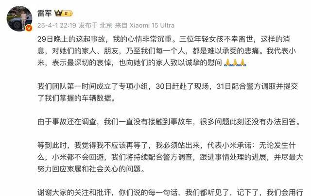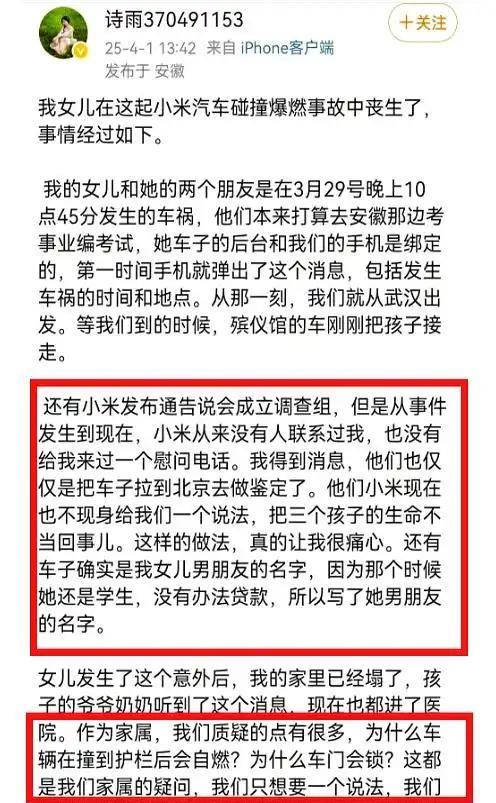 这起悲剧不只关乎三位无辜的年轻生命,它还引发了对小米汽车的严重信任危机。