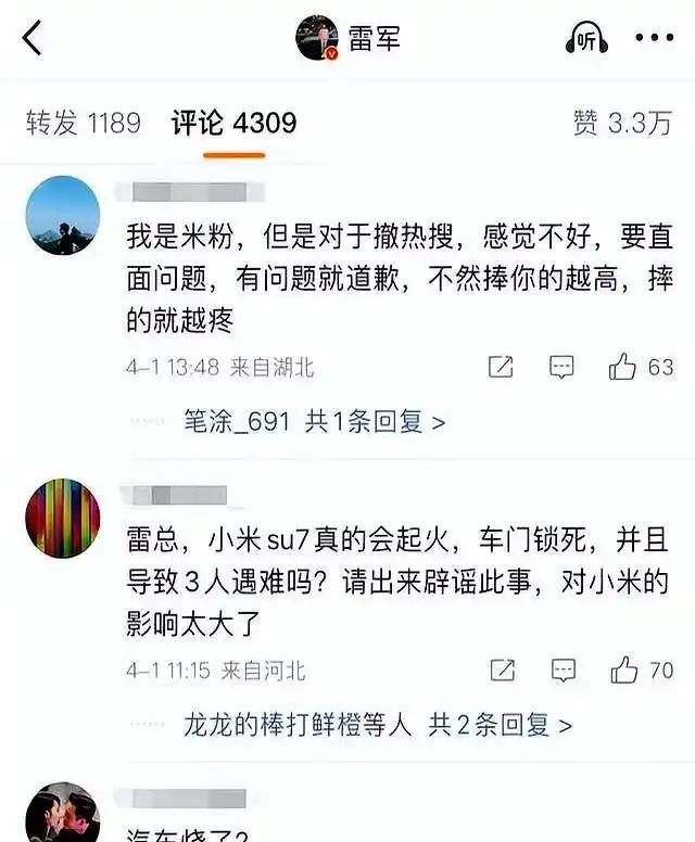 随着市场对小米汽车产品安全性的质疑声越来越大,雷军和小米需要做出快速而有效的反应。