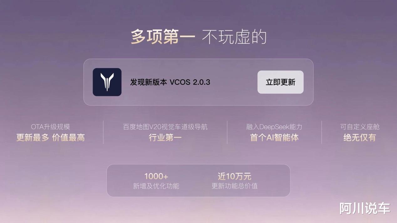 第一最,行业迄今最大规模的OTA升级:新增及优化功能超1000项,涵盖导航、语音、生态、系统桌面、智能体验等多个模块;