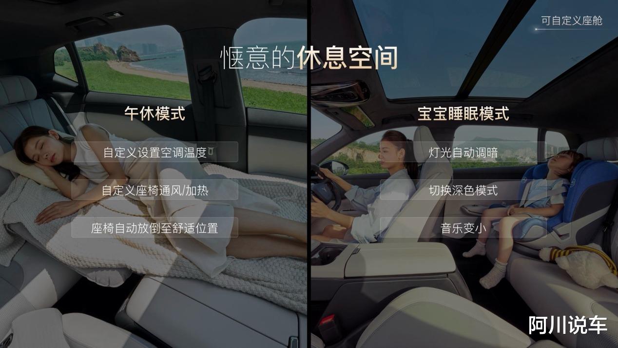 比如,车主可以编排“午休模式”,座椅自动放倒、开启舒缓音乐,一键启动后,岚图知音的座舱秒变惬意的休息空间。让车主在繁忙的工作后,可以在这个专属的休息室里放松身心,快速恢复精力。