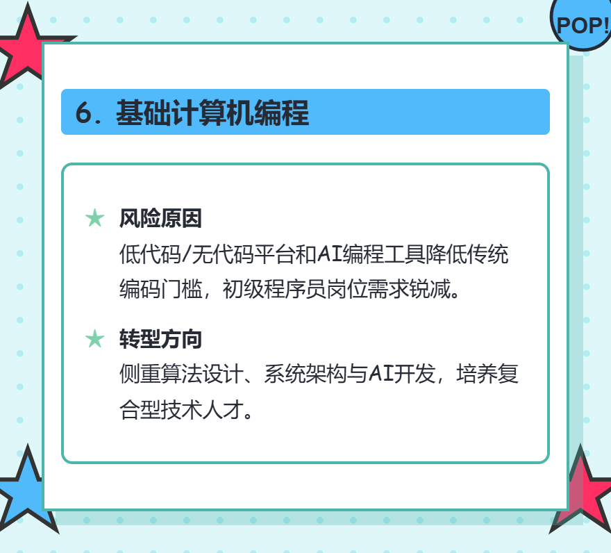 时代的车轮从不为任何人停留。面对专业淘汰的浪潮,有人焦虑,也有人看到新机遇——与其被动等待,不如主动升级技能,在AI无法替代的创造力、情感沟通和复杂决策领域建立优势。
