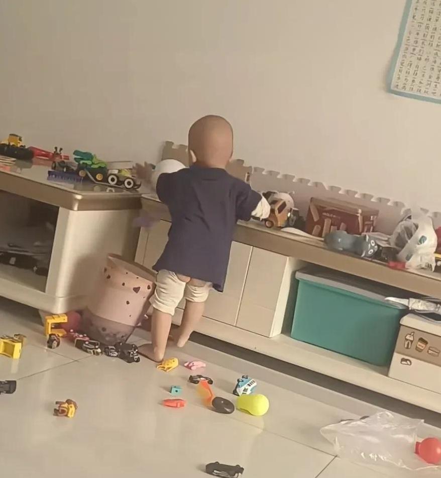 但转瞬间,孩子又充满了活力——这次轮到茶几上的遥控器遭殃。