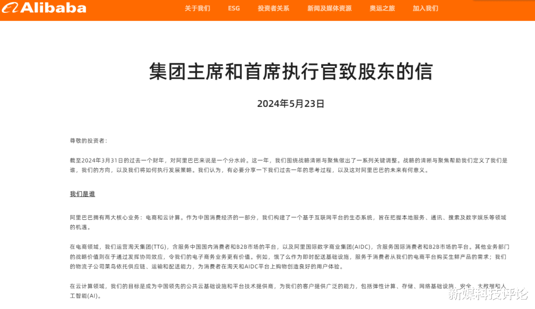 近日,阿里主席蔡崇信、CEO吴泳铭也发表了一封联合署名的致股东信,其中提到了阿里出现了一些“大公司病”的症状,但公司将积极对“大公司病”开刀,并保持创业精神的决心。