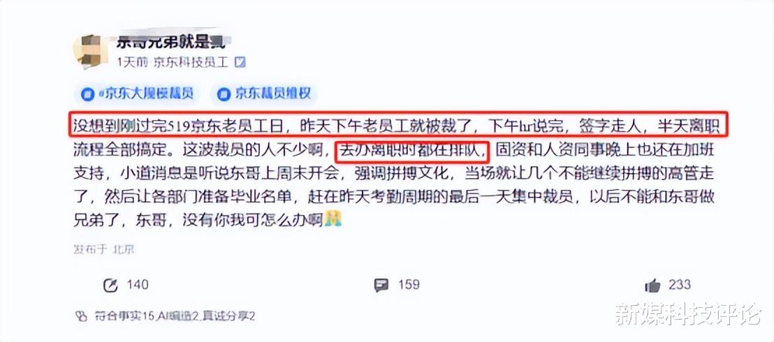 与此同时,京东的裁员也在悄悄进行。有网友表示自己刚刚在京东过完“老员工日”,第二天就被裁员了;也有网友表示,自己正在写618代码,忽然就被裁员了。“京东618的前奏是裁员”也因此迅速登上脉脉热搜榜。