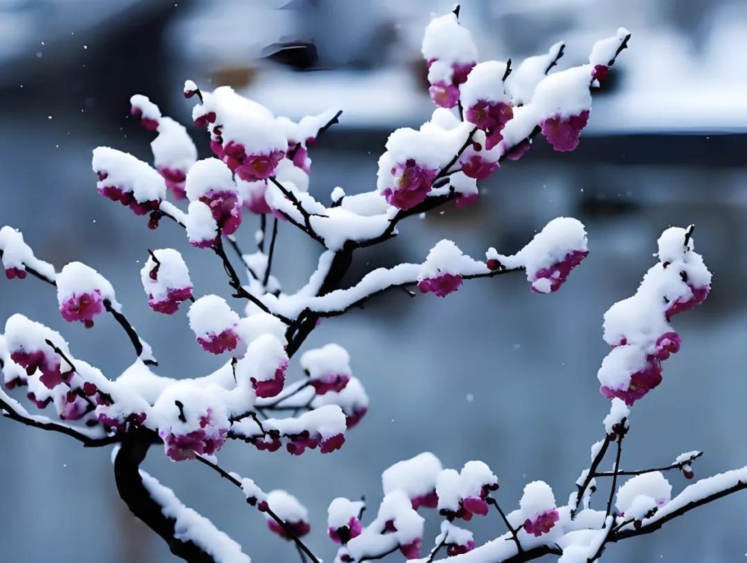 寒冬腊月,冰天雪地,梅花在凛冽的寒风中独自绽放。