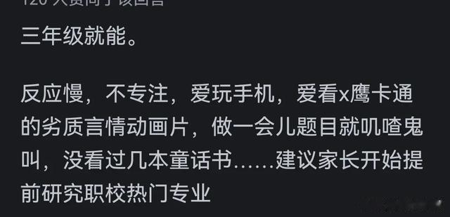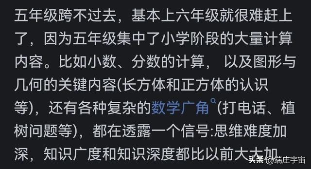 所以说,三年级是小分水岭,能看出成绩的好坏,但是有一定机会可以赶上;五年级是大分水岭,跟不上的话,基本上后面就都跟不上了。