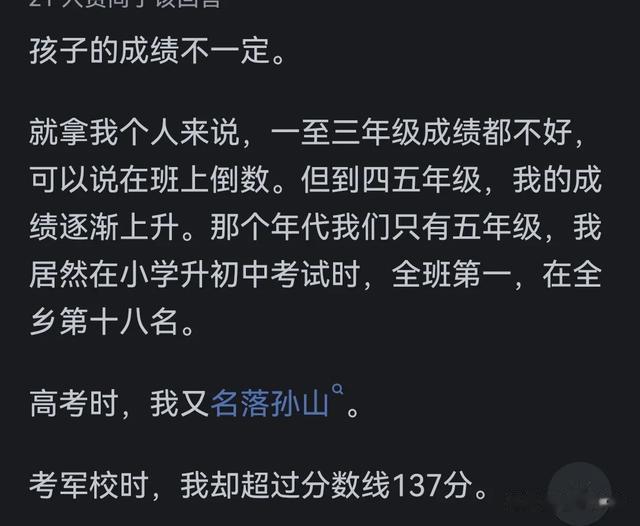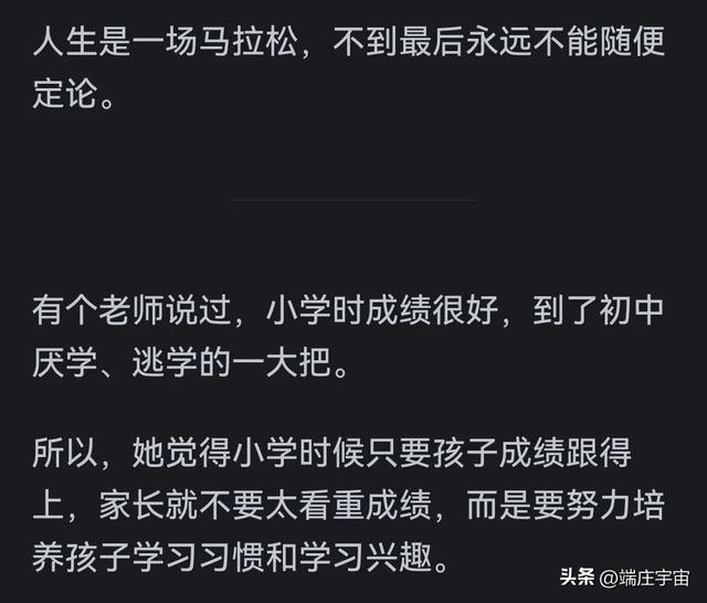 所以对孩子成绩不要太在意,不要太纠结,今天第1名,将来也可能是倒数。今天成绩不好,将来有可能意想不到的成绩出现在眼前。不以物喜,不以物悲,一切顺其自然吧!欢迎留言讨论呢感谢各位看官的阅读,祝看到这里的你天天开心,顺风顺水发大财,别忘了点赞关注哦~我们评论区见!