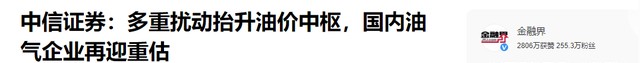 金融届-中信证券:多重扰动抬升油价中枢,国内油气企业再迎重估