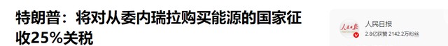 人民日报-特朗普:将对从委内瑞拉购买能源的国家征收25%关税