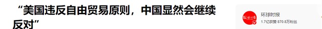 环球时报-“美国违反自由贸易原则,中国显然会继续反对”