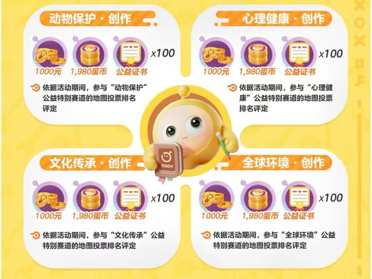 值得一提的是,此次全民乐园狂欢中,官方特设公益创作赛道,细分「动物保护」、「心理健康」、「文化传承」、「全球环境」四个创作方向,旨在满足多元创作群体需求,承袭蛋仔乐园一贯弘扬正能量的传统,推动正能量内容传递。