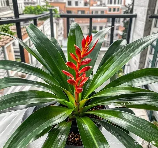 鸿运当头,学名红星凤梨,花形奇特,色彩鲜艳,寓意鸿运当头、红红火火。其养护需保持较高的空气湿度,可定期向叶片喷水。冬季要保持室内温度在10℃以上,避免叶片受冻。