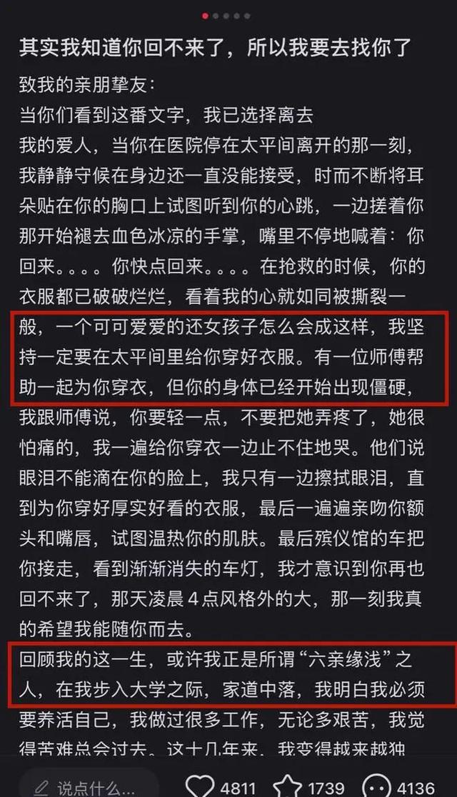 有人说:“哎呀妈呀,我一开始刷到相关帖子的时候,评论区全是在说要报警找人的,结果再一刷,好家伙,人已经没了。我之前还以为殉情这事儿只存在于古老传说里呢,这也太可惜、太让人难受了。”