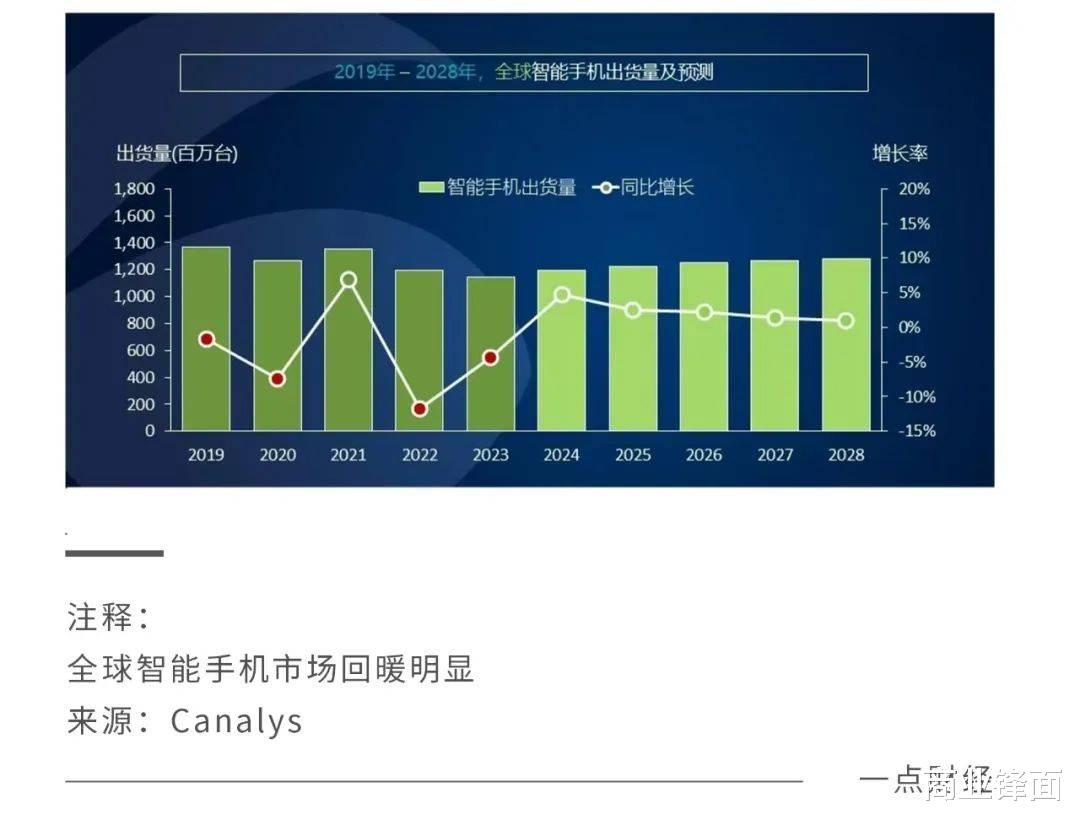 Counterpoint、Canalys等市场调研机构不约而同地预测,2024 年全球智能手机出货量将达到12亿台以上,同比增长5%,结束连续两年下降的局面。