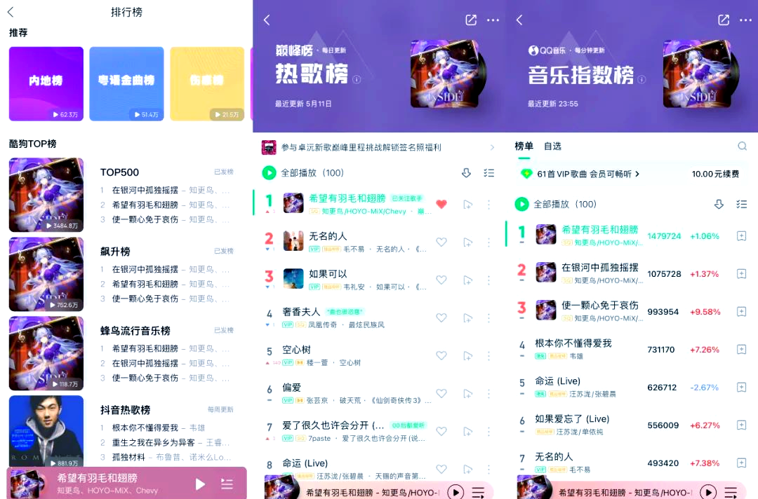 至于由“Chevy”演唱的知更鸟的《在银河中孤独摇摆》、《使一颗心免于哀伤》、《希望有羽毛和翅膀》,更是在这一年内更是成为了各大音乐平台的榜首常客。