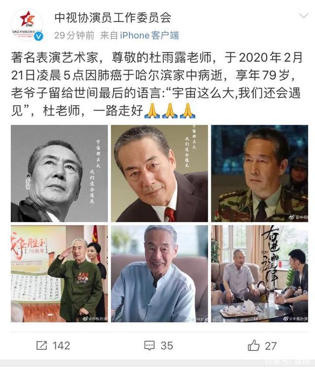 著名表演艺术家杜玉禄于2020年2月21日凌晨5时在哈尔滨家中死于肺癌,享年79岁。杜玉禄的遗言是“宇宙如此之大,我们将相见”。