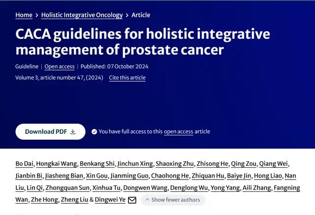 引用格式:Dai, B., Wang, H., Shi, B. et al. CACA guidelines for holistic integrative management of prostate cancer. Holist Integ Oncol 3, 47 (2024). https://doi.org/10.1007/s44178-024-00118-4