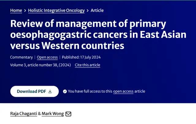 引用格式:Chaganti, R., Wong, M. Review of management of primary oesophagogastric cancers in East Asian versus Western countries. Holist Integ Oncol 3, 38 (2024). https://doi.org/10.1007/s44178-024-00108-6