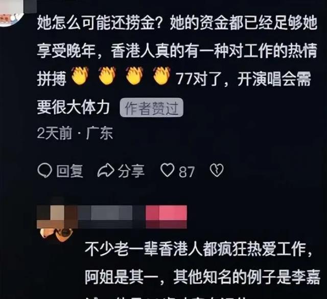 也有网友附和到,老一辈的香港演员都十分热爱工作,汪明荃也是其中之一,而且她为了演唱会也筹备了很久,77岁还能顶住身体的压力开演唱会,说明她是真的热爱舞台和唱歌。
