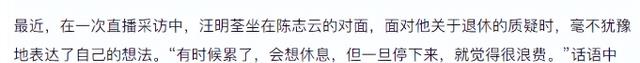 汪明荃在一把年纪还能在舞台上如此卖力,也有人问过她是否要停下来休息一下,对此汪明荃的回答是累了的时候想休息一下,但要是停下来的还会觉得浪费。