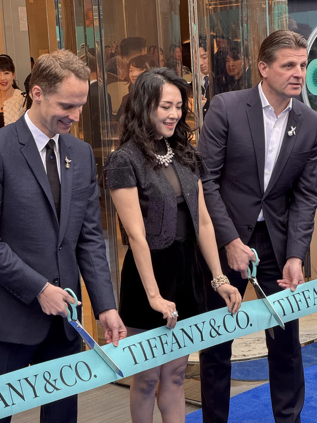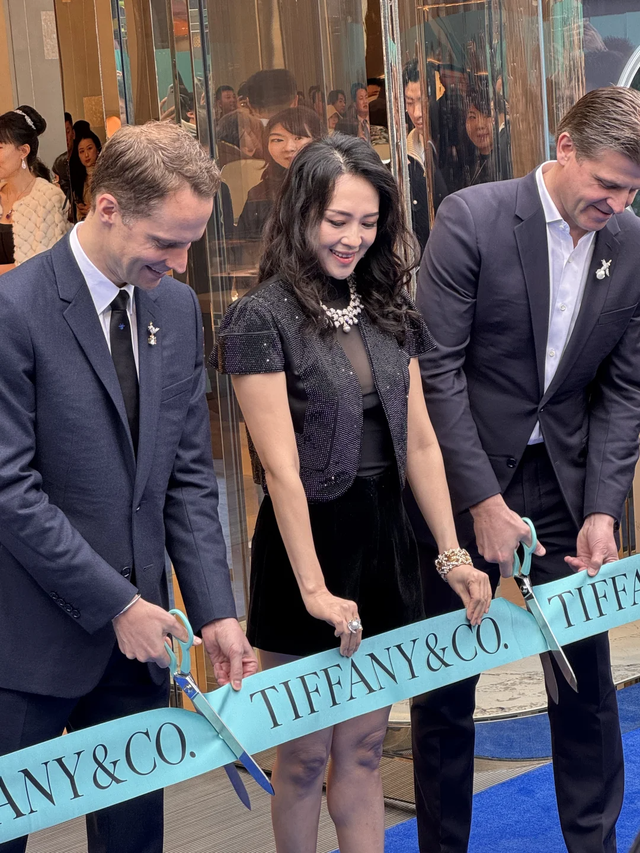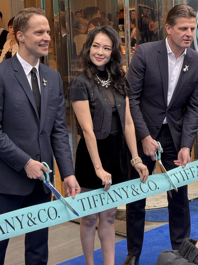 章子怡小姐的状态保养的真不错呀! 作为13日成都太古里Tiffany旗舰店开业唯一剪彩嘉宾,站在蒂芙尼品牌总裁旁边的她气场确实强大,不愧是国际章 。