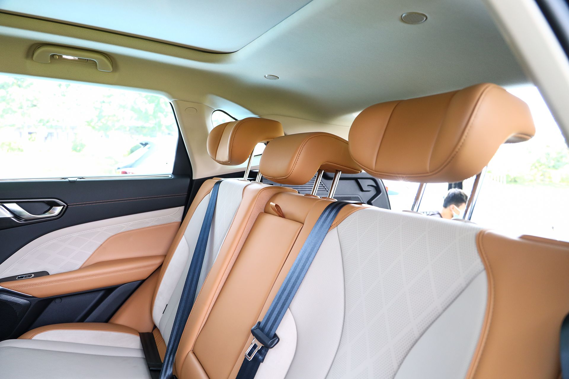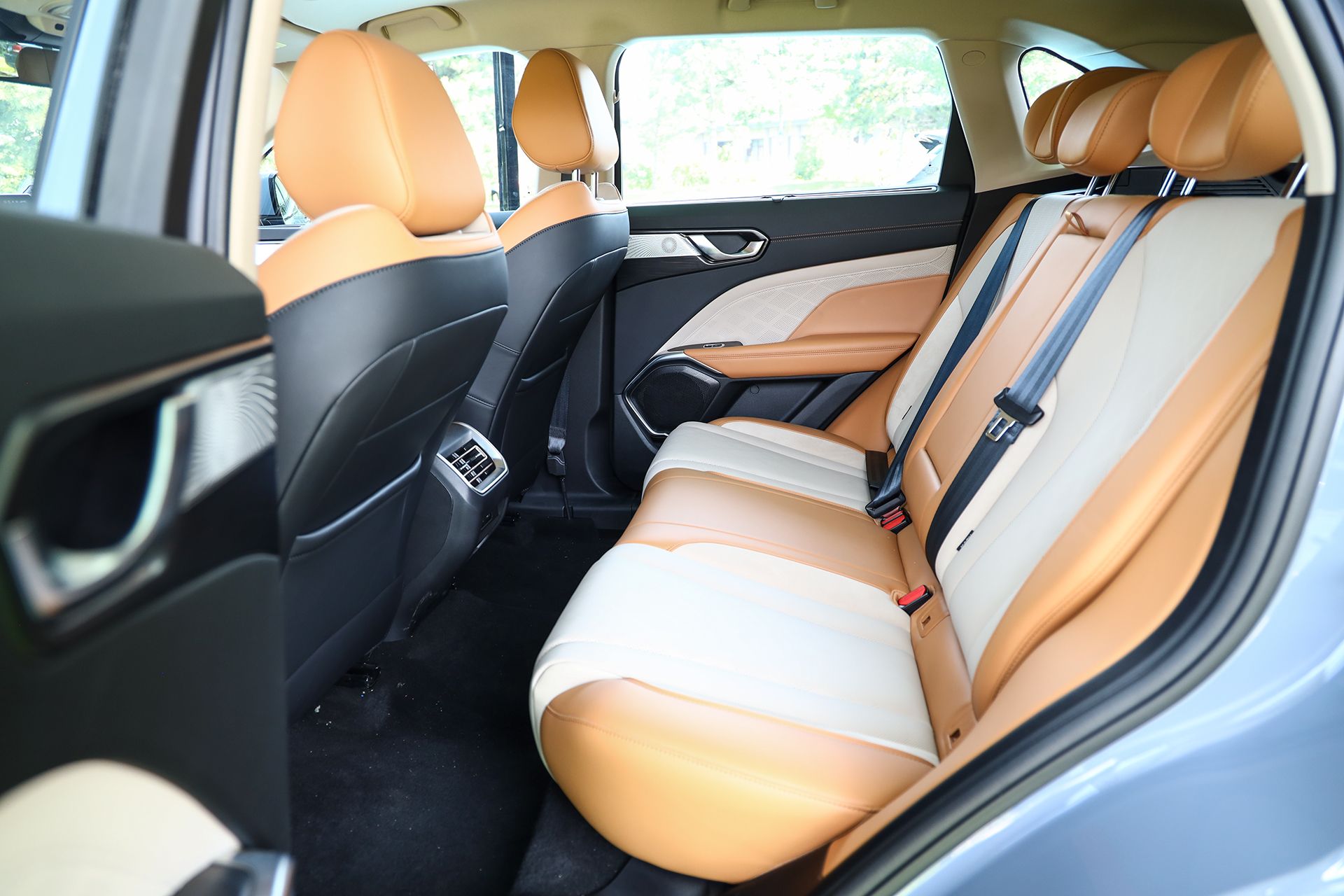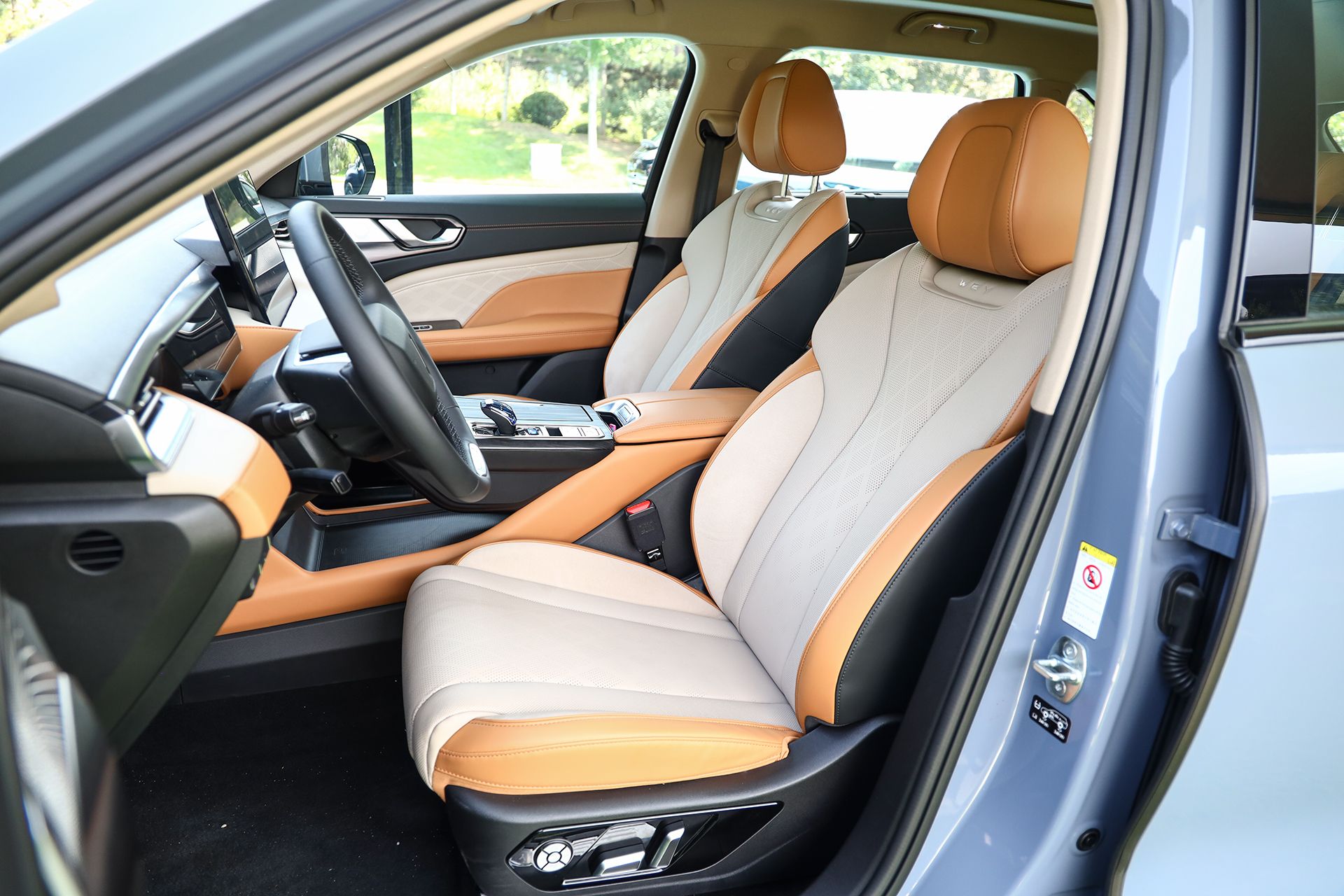 拿铁DHT-PHEV的前后排座椅的座垫和靠背都非常厚实,采用打孔真皮材质手感细腻舒适。乘坐感也非常像坐在家中的沙发里,长途旅行不容易疲惫。同时,后排座椅标配了三个可调节的头枕,靠背也可以三段可调,在细微之处体现出出色的安全和人性化设计。平整的后排地板,让后排乘客拥有更大的脚部空间。