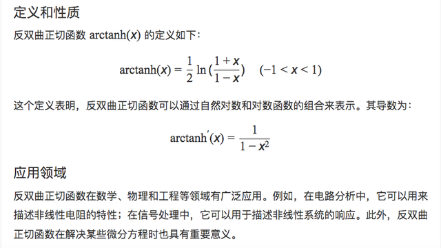 其中的arctanh是反双曲正切函数,关于这个函数定义如下: