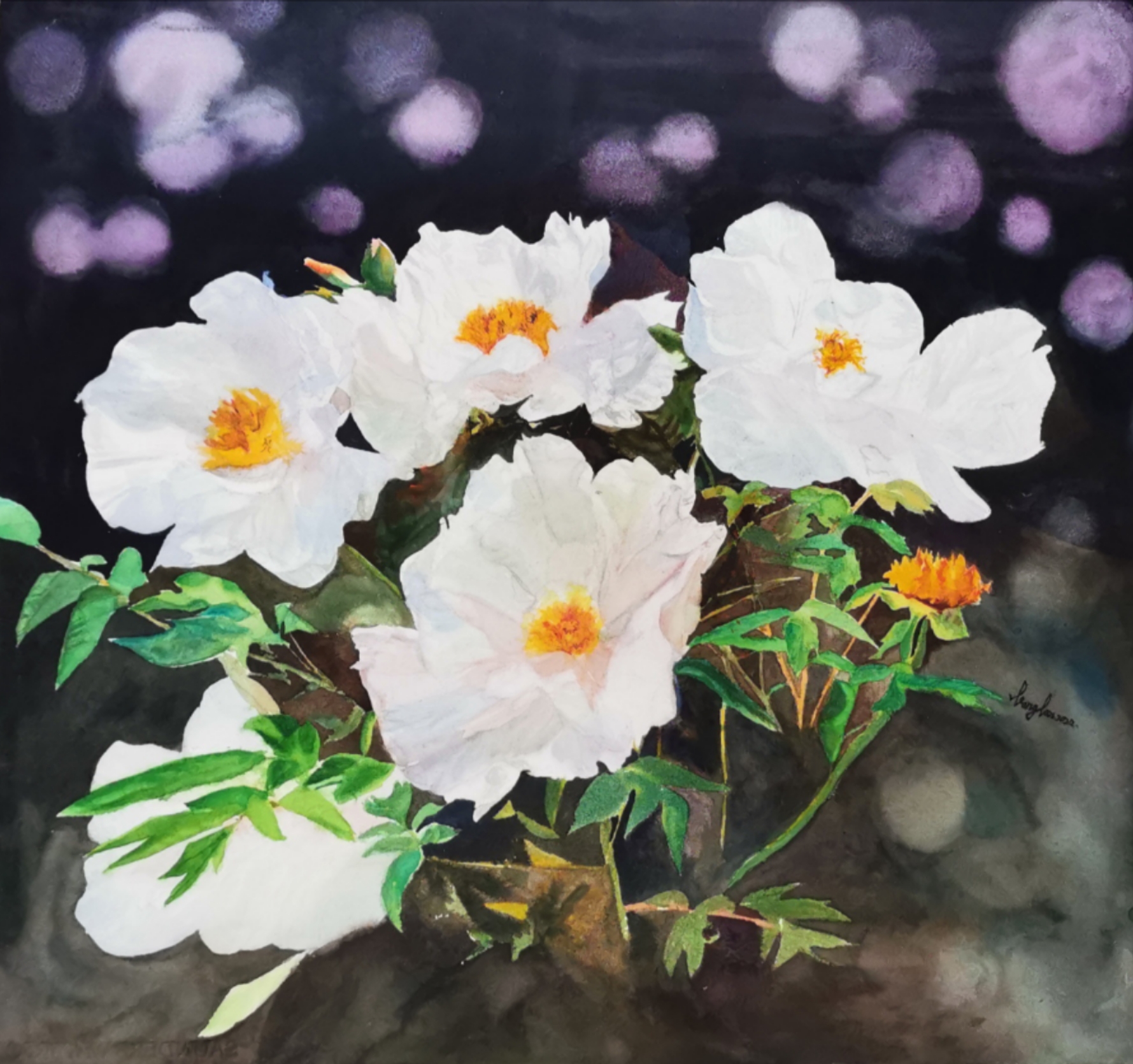 2015年3月 作品《花开见佛》首届全国女性水彩粉画展入展